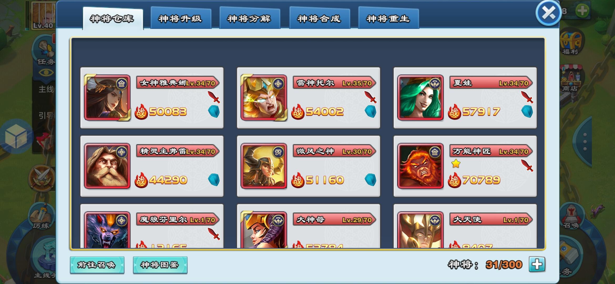 玩这个游戏一段时间了,也充了百把块钱。整体感觉还可以,以前玩过类似的游戏,但那个游戏关服了玩不了,好不容易找到个类似的。 1.这个游戏优点方面呢,对微氪玩家,平民玩家还是比较友好,我微氪了一点现在排行榜第二。这里建议新手玩家多存钻,限时神器和限时神将活动可以轻松冲到前三。开区10块钱拿个雅典娜应该都能接受,然后第二天领雷神,这两个神将主要便宜,后面的神将靠竞技场买,还有限时神将活动冲榜,第一名24