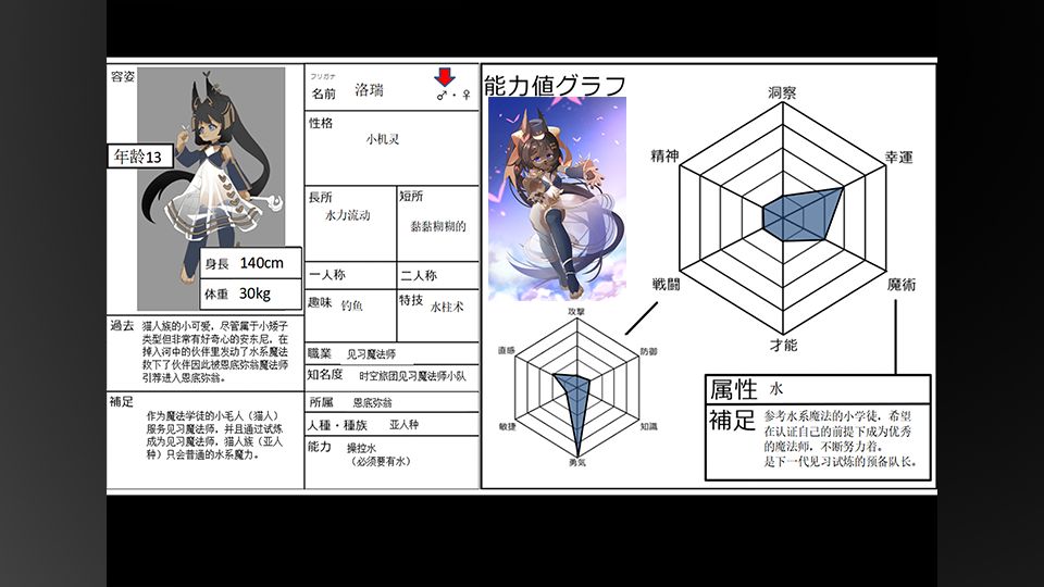亚兽人种的绒毛族少女,因某些情况进入恩底弥翁,最后得到空间魔法学院的认可,天资聪慧被破格提拔这次试炼会成为下一任 时空旅团的 队长。