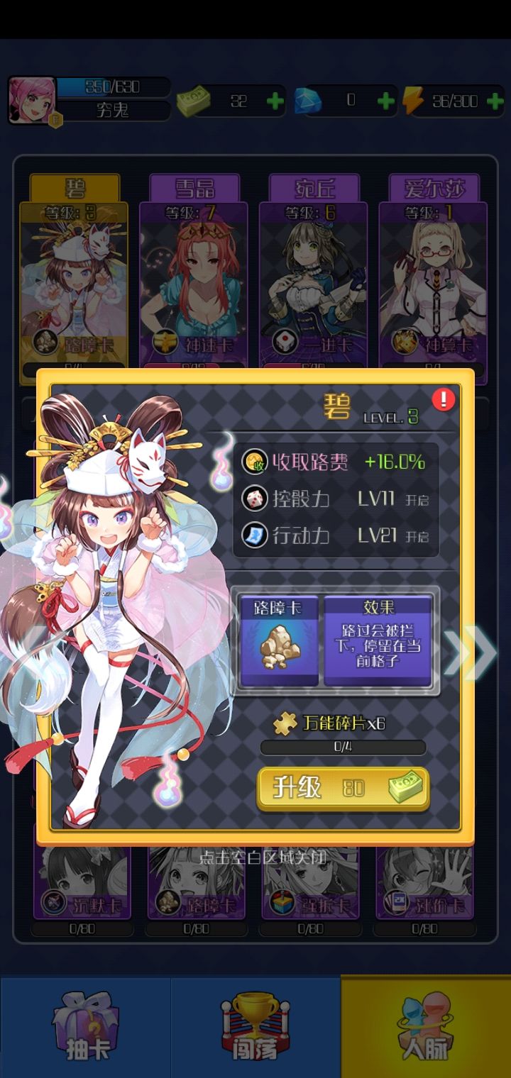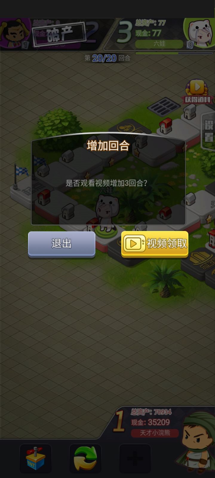 不建议玩 闯关玩法 1,每关只有二十回合 大富翁玩法就二十回合太搞笑了 他可能还觉得自己设计的很有意思。而且 看广告可以增加 2,体力限制,不管你是重开还是挑战新的关卡,都需要60体力。你最多玩五关体力或者重开五次。看广告可以增加 3,莫名其妙的抽卡系统 抽到的技能卡才可以用在对局里。钻石升级和完成成就以及每日签到,以及看广告可以给 。 总结下来整体的感觉就是 这是一个测试版的没有任何能让我体验游戏快感的游戏。全程联网的单机玩法。任何一个操作都会和广告搭边。充满了限制性的系统操作。我怀疑制作团队根本没有玩过大富翁。