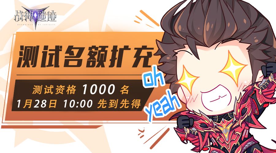亲爱的誓约者们: 1月28日《战神遗迹》将正式开启首次测试!截止目前我们已收到大量玩家们提交的招募问卷,数量远超出了我们预计的招募名额。我们十分感谢广大玩家们对《战神遗迹》的热情期待!为了感谢大家支持,我们决定扩大测试规模,将于1月28日测试当天开放至1000个测试名额!测试资格的获取方式将以游戏内【首次下载时间】为准,先到先得。 同时,为了感谢积极参与测试招募的玩家们,我们将为1月23日23