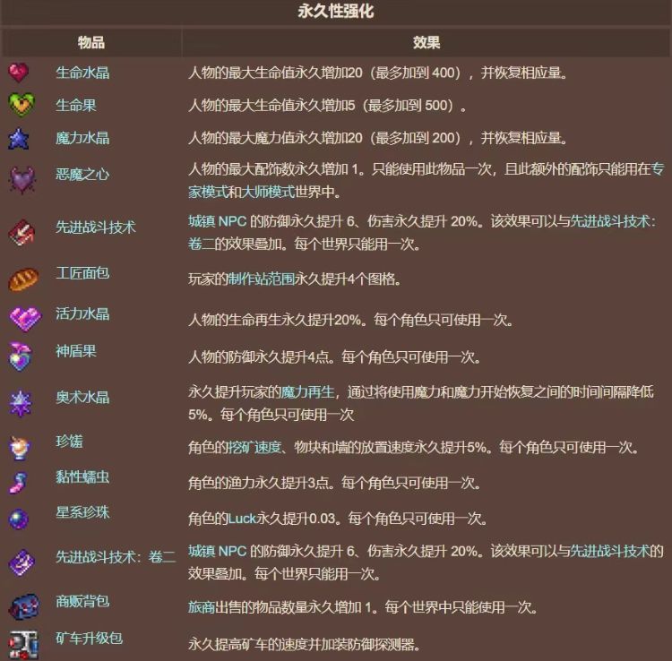 盘点泰拉瑞亚里那些永久性提升主角和NPC属性的物品