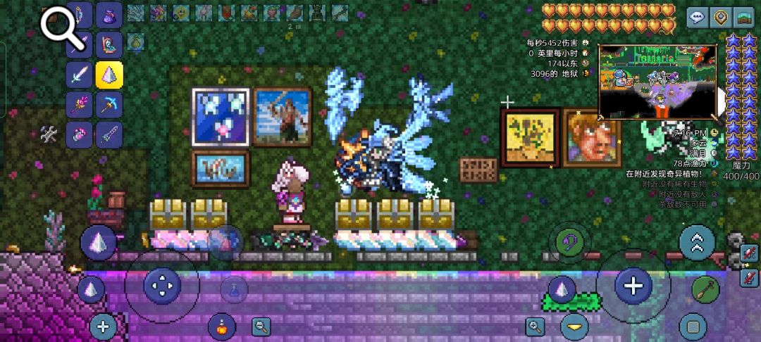 以前打花总是先打猪拿水刃龙卷所以打着跟玩一样,这次我将猪鲨调到石后,用正经的本时期武器打! 彩虹法杖一阶段没什么可说的,二阶段不行场地挖小了,触手太多一碰就碎,不得已只能拉上地表打了[表情_捂脸哭]地表二阶段开着飞船摸都摸不到我。 花后地牢探索过于困难,上b站看了「克总来了」的视频家旁边建了个地牢刷怪场,目标幽灵套 幽魂法杖 火叉 射线杖,圣骑士盾和幽精甁也来了,不错不错[表情_开心]。 顺手解决