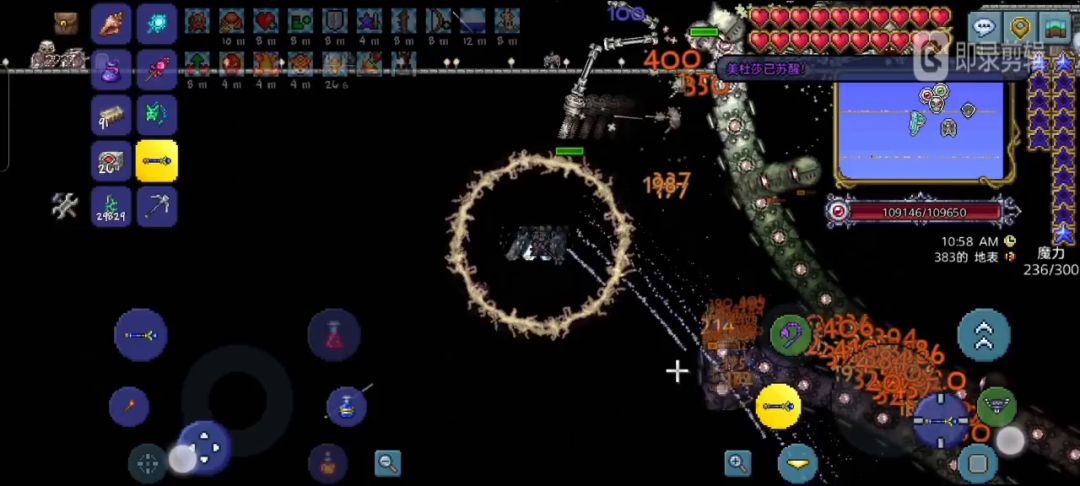 孩子们看我用重力药水暴打肉山!布豪重力翻转状态下无法召唤坐骑,孩子们快跑!五十金买的高尔夫车白瞎了,场地也白瞎了[表情_捂脸哭][表情_捂脸哭][表情_捂脸哭] 还得是铁道打法,正值铁道周年庆,有开拓者的力量打败肉山是必然的![表情_酷][表情_酷][表情_酷] 配置 耐力铁皮再生回魔拾心镇静黑曜石中饱食 丛林套 蜜蜂背包双鲨牙蠕虫围巾黑曜石盾磁力花全护佑 蜜蜂枪 海蓝权杖 90血药100蓝甁 鲤