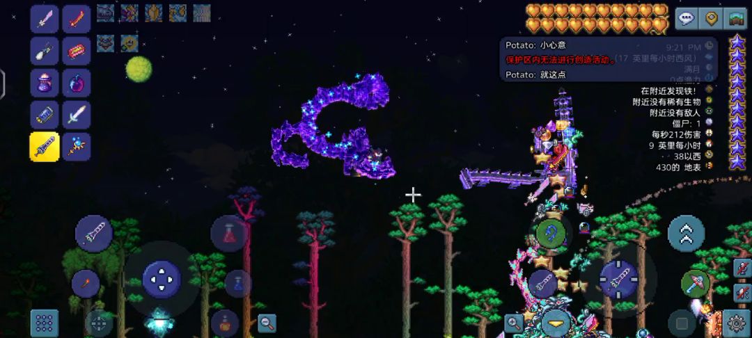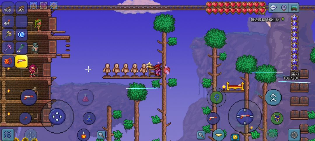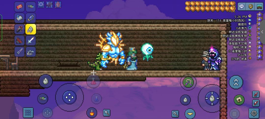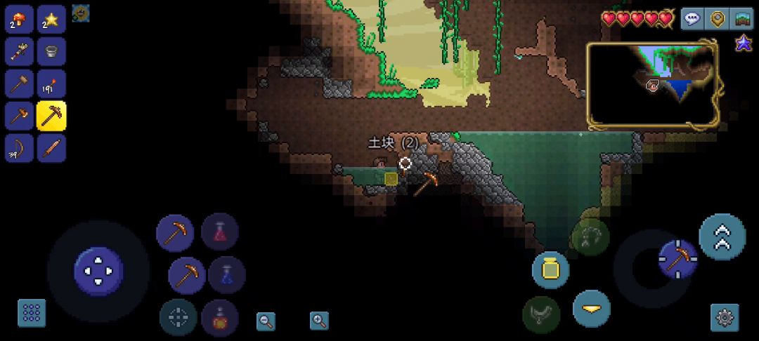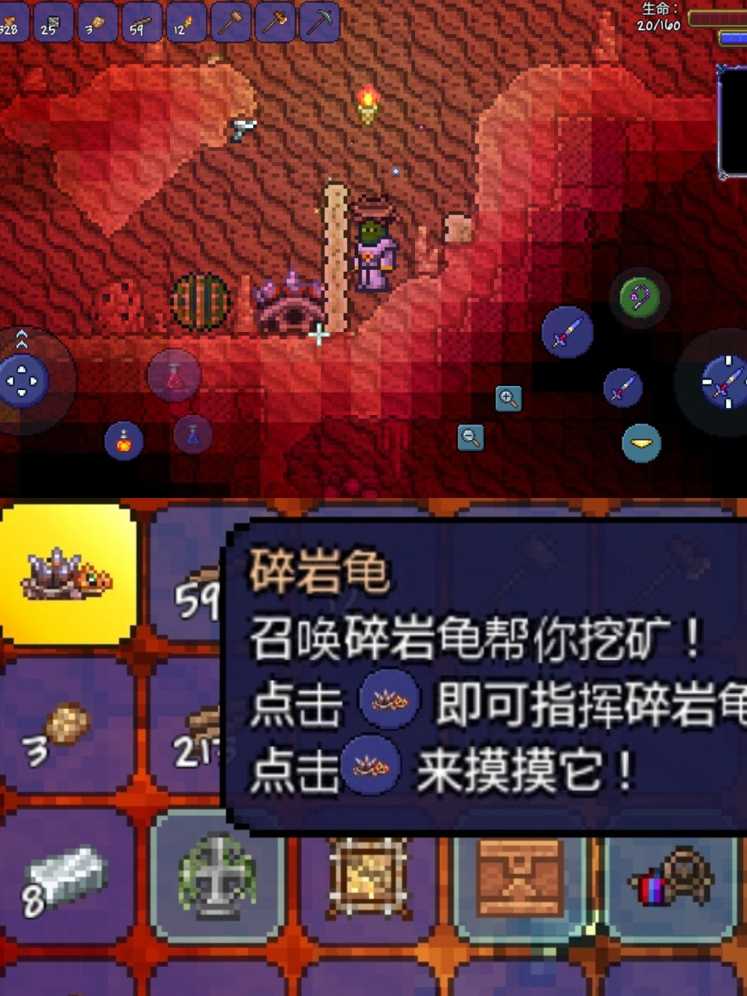 4、想要和npc对话,或者打开宝箱和存钱罐就先切换触屏操作方式,再打开背包,然后左手按住npc,或者箱子,再点右操作杆,就能做到你想要的结果,不论是npc对话也好,还是打开宝箱和存钱罐都有用,这个是比较简单的操作方式