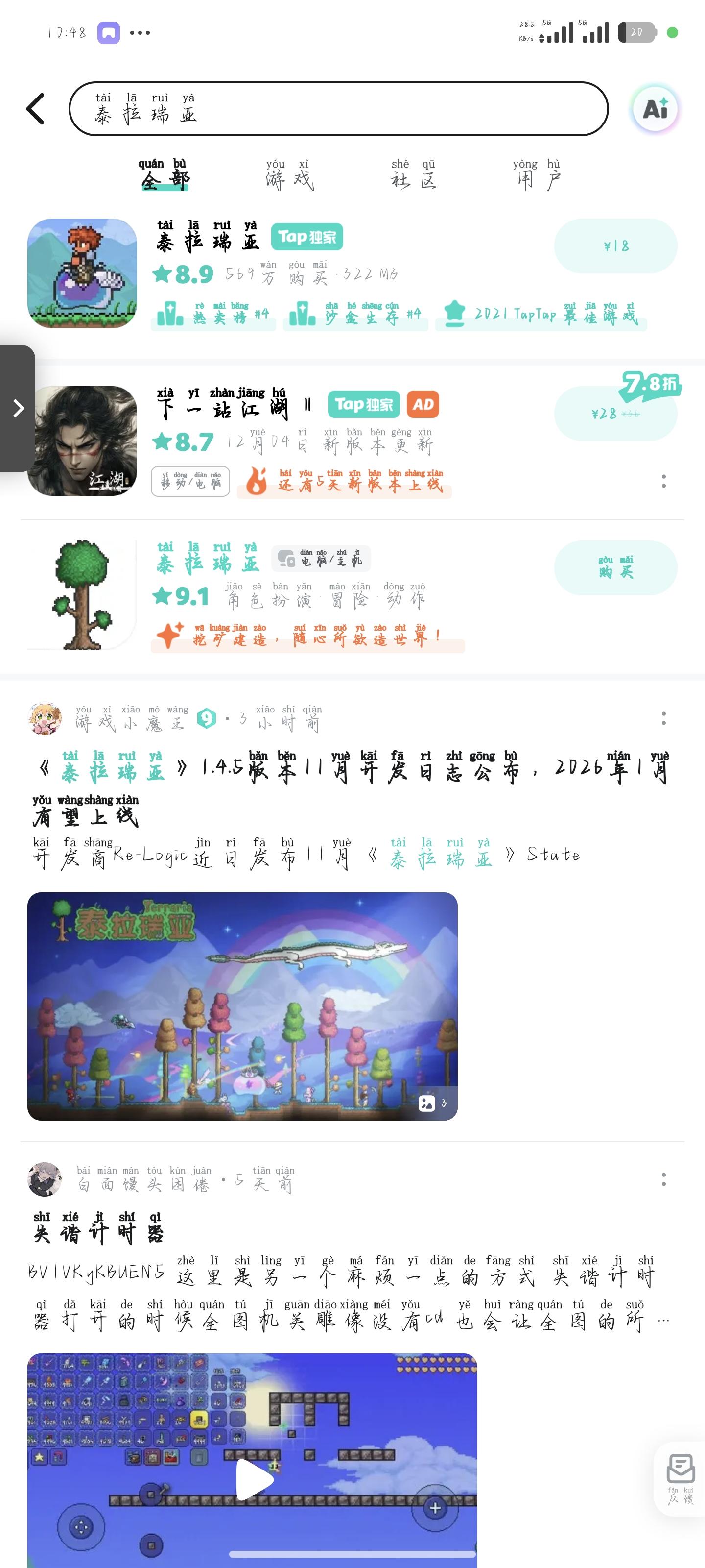 在游戏本体内容之外,我们也为大家提供了来自【创意工坊】的特色玩法。 受限于版号的要求、版权归属、和手机运行环境的限制,类似于大热的“灾厄”模组无法在手机呈现,不过我们也在PC原版的创意工坊、以及各个社区作者处收到了一些可供实现的玩法模组地图,通过【地图下载】这一功能,给大家提供游戏本体制外的可能性。 【地图下载】按键位于主菜单的右上方,收录了社区中部分热门的创意玩法和地图,供大家下载体验,在不同的