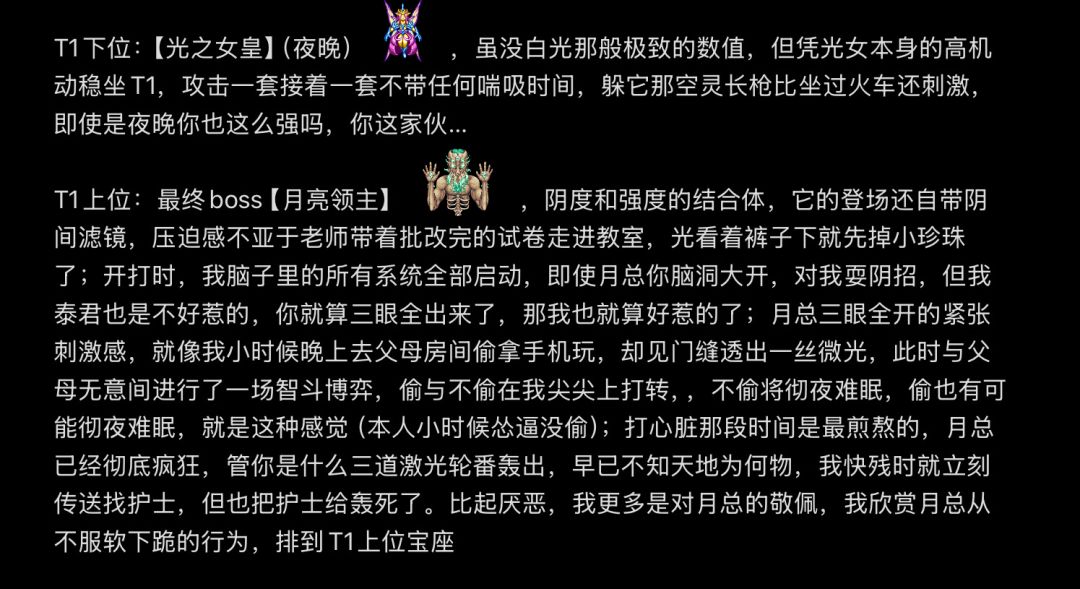 个人声明:本人游玩泰拉瑞亚四年,不是云玩家,此排行以个人对boss的见解客观评价,这期可能争议较大,若在观看过程中有所观点不同,也可以分享到评论区讨论,先对您们说三句对不起[表情_泪目]一歉,对不起各个boss厨们;二歉,对不起文案写得有点夸大其辞;三歉,对不起可能引起您不满与身体不适。如果觉得我并不专业,就把当乐子看就行 #泰拉瑞亚 审核求你了[表情_豹哭]我这是每期必备的个人声明,内容在图片里