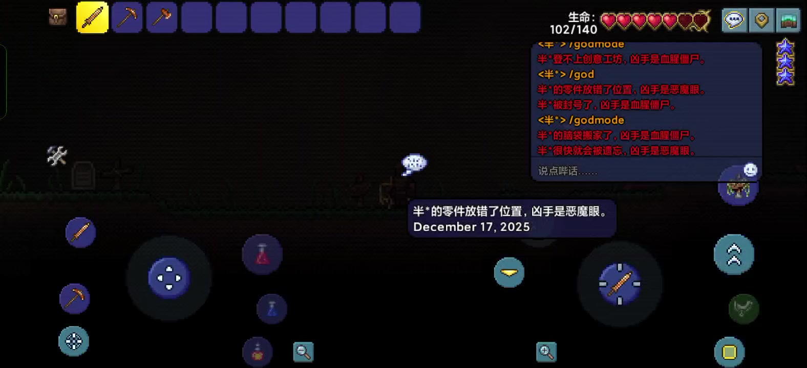 主要是目的是为了解锁剩下成就,但是希望慢慢玩。一般晚上和周末有空。能玩的时间不太多,所以最好你建房间。希望能开麦的来,感觉打字还是不方便。#泰拉瑞亚
