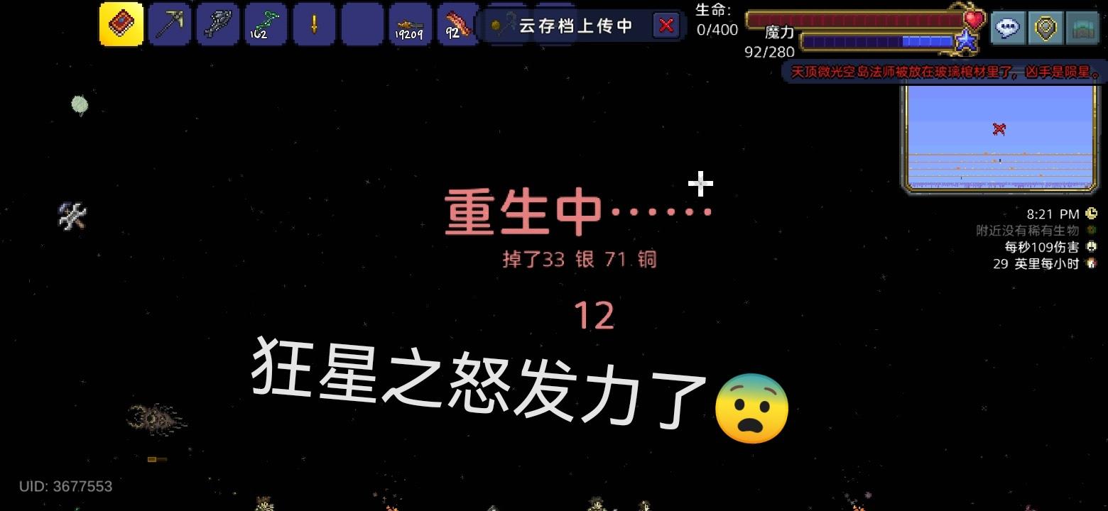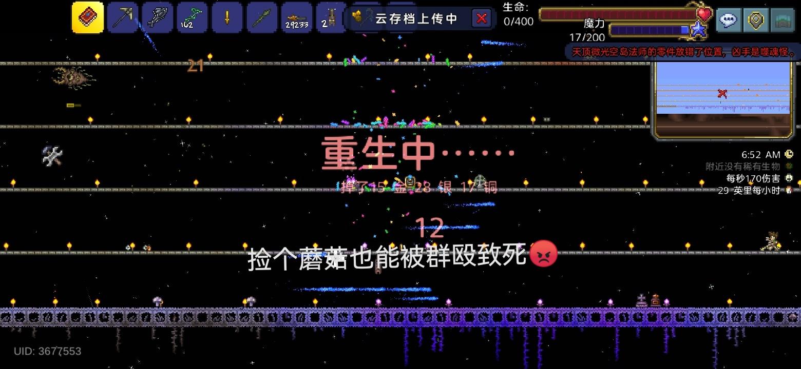 终于把这个世界吞噬者给过了,真恶心😡,这个唾液一颗接一颗,没有护盾的我只能受着,不过现在好在过了🤓,打算换一下我的饰品,但本身玩法师也不算太长,所以就想问一下各位牢法有什么建议吗?#泰拉瑞亚 #泰拉瑞亚空岛 #泰拉瑞亚天顶微光空岛