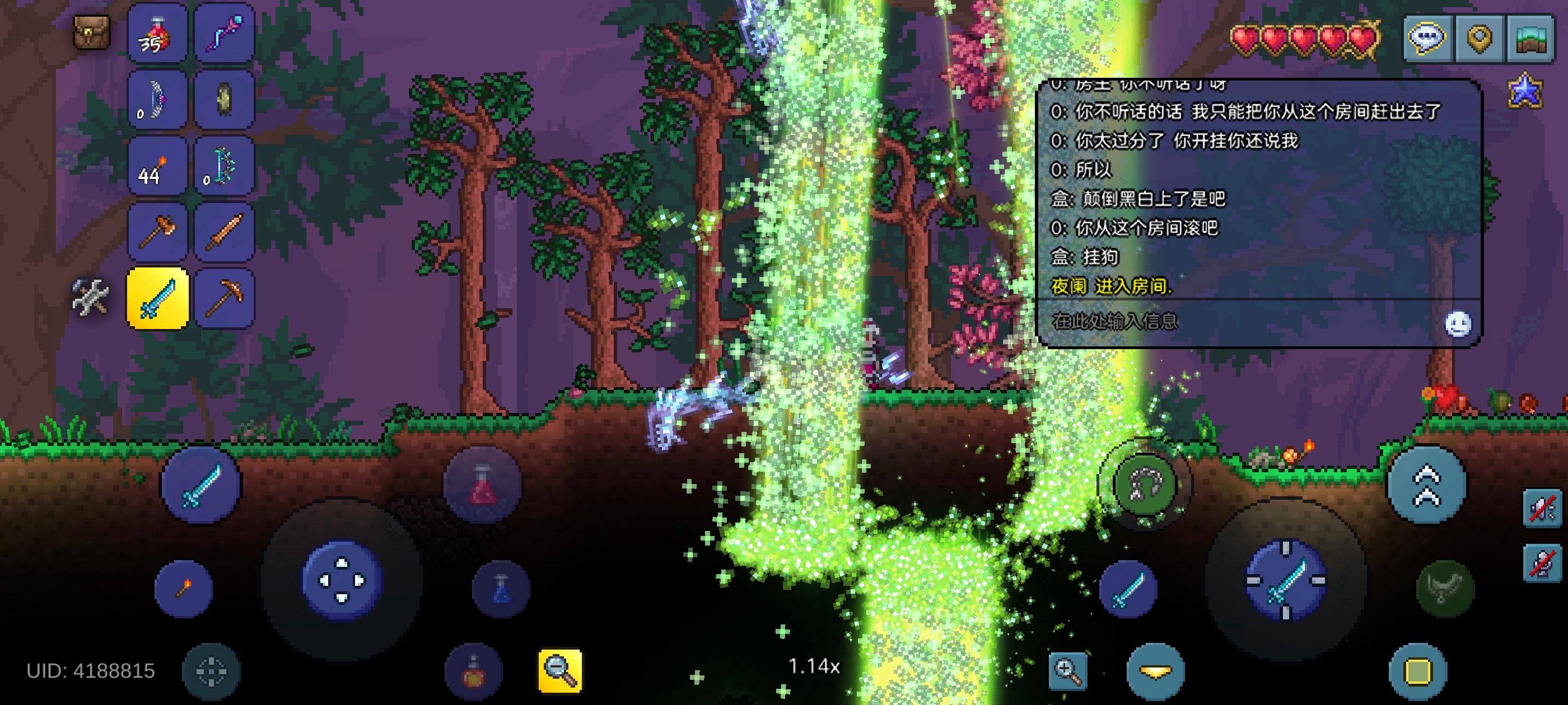 泰拉瑞亚的官方人员你们好,我要反馈一个问题,我在联机游玩泰拉瑞亚时,进来一个玩家,在房间列表中显示不出来,他拿着一把能射出游戏内所有弹幕的弓,并且无法被击杀,我是房主,尝试用击杀指令来杀死他,但聊天框显示错误,无法将他击杀,boss和玩家都无法对他造成伤害,这种已经是外挂了吧,踢不掉也杀不死,手里的武器伤害还高,他还用一些方法让我的游戏卡死,在最近组队的列表里也找不到他,这种外挂我是第一次遇见,不