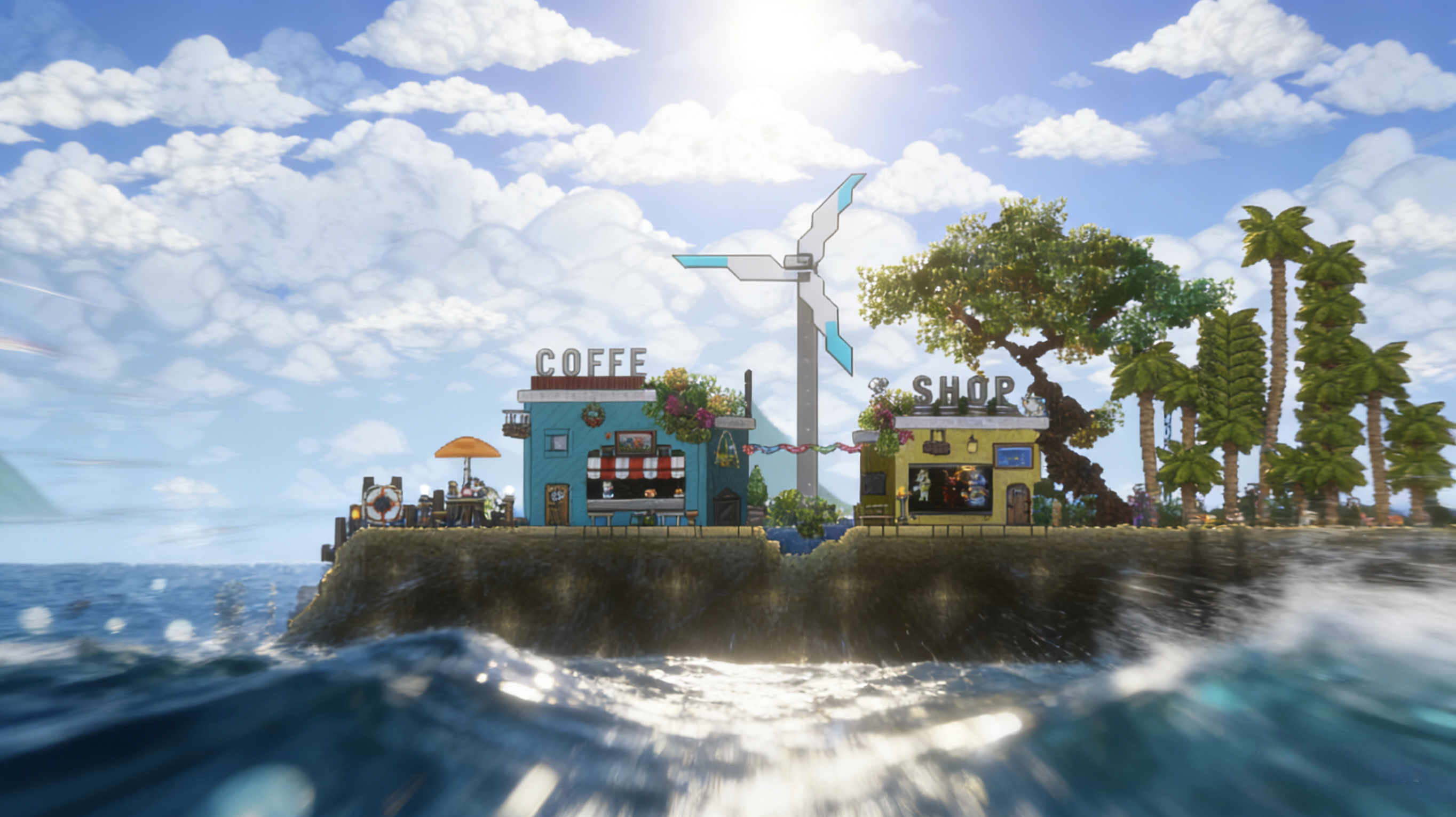 #泰拉瑞亚 #泰拉瑞亚建筑 游戏CG风格,极具艺术感、震撼人心,色彩丰富,暗部叠加,特写镜头,超高清。落叶飞溅,前景虚化,动态模糊,背景动态虚化,阳光灿烂,蓝天白云,光影交错,仰拍特写镜头,突出速度感和视觉冲击力,强透视。原比例。提示词在这,可以适当调整(我把落叶去了加了海边元素)哈哈哈觉得挺有意思的#泰拉瑞亚建