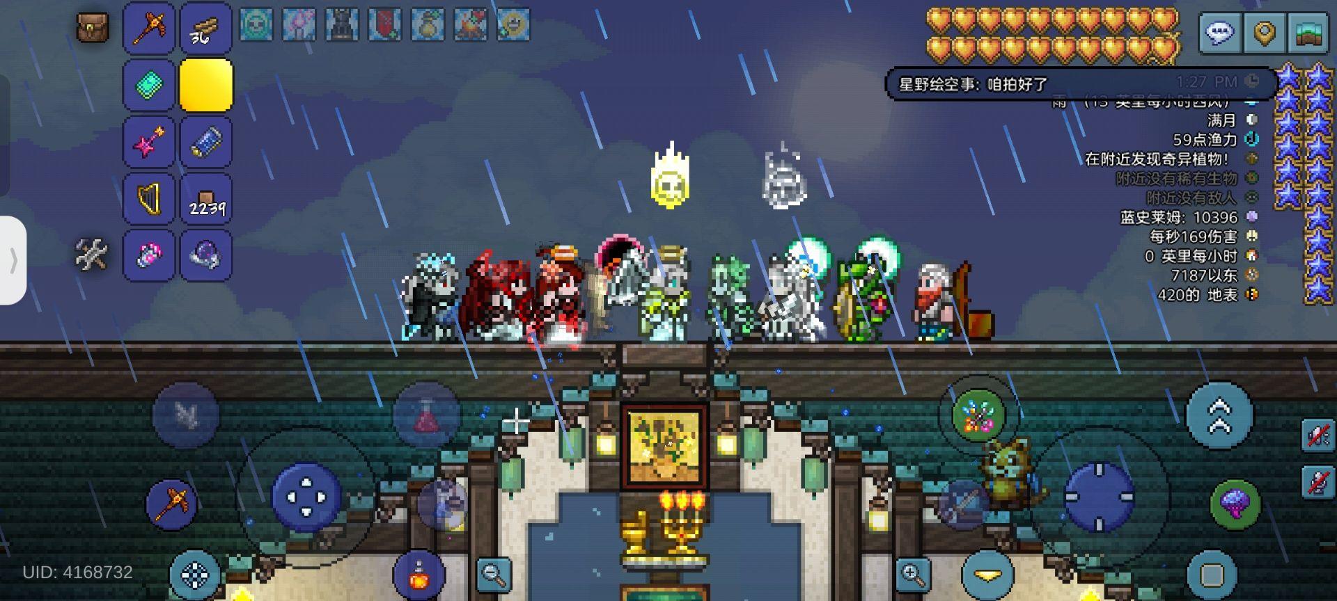 #泰拉瑞亚 刚通关传奇现在正在天顶,能心态好能坚持下去的来,现阶段才打到克脑房间3个人