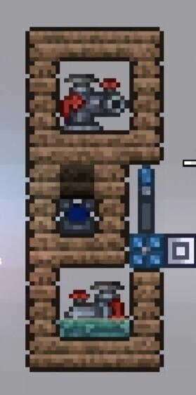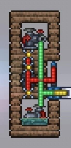 黄线是输出(不能用绿线输出,会窜信号!)出水泵下面那一格有促动器的方块是含水方块,入水泵部分是一桶水(必须仅有一桶!)可以用来激活电子钟,由于没有延迟,可以精确从上一次退出游戏时的时间开始计时。对加载范围没有要求(假人开服感应需要玩家靠近才有信号)如果感应器经常不工作,可以考虑换个地方重建(泰拉风水学)1.换回了水作为工质,复位比上一代蜂蜜传感器快很多,但高度增加了一格。2.给液体平衡