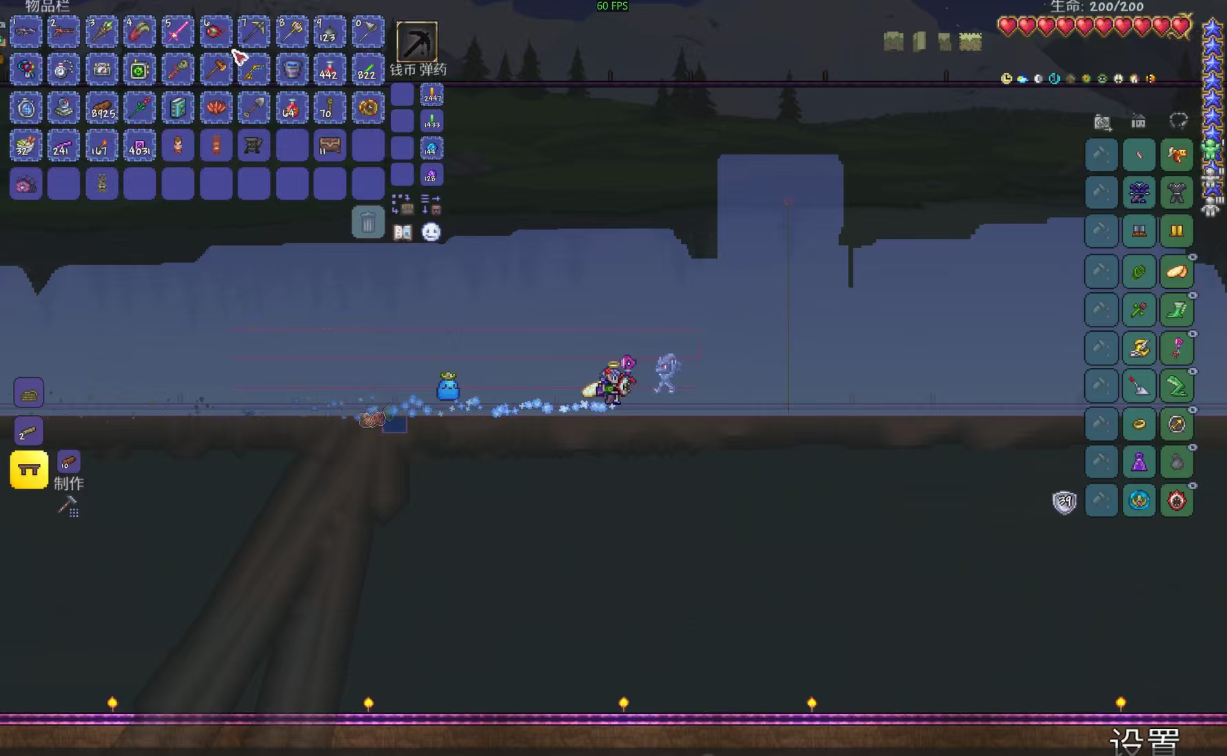 突然到来的血月,手足无措ing,只打了个血鲨鱼分别刷了两个血腥宝箱怪,一个掉夺命杖,一个掉臭虎爪遇到骷髅商人,把渐变球搞到手了捏(虽然似乎现在看来并没有啥用…)做水蜡烛和暗影蜡烛提高刷怪率(我看还有谁不知道水蜡烛在肉后是可以制作的)刷妖精尘,做仙灵之翼迟来的骨镐嘤终于刷到飞镖手枪啦钓
