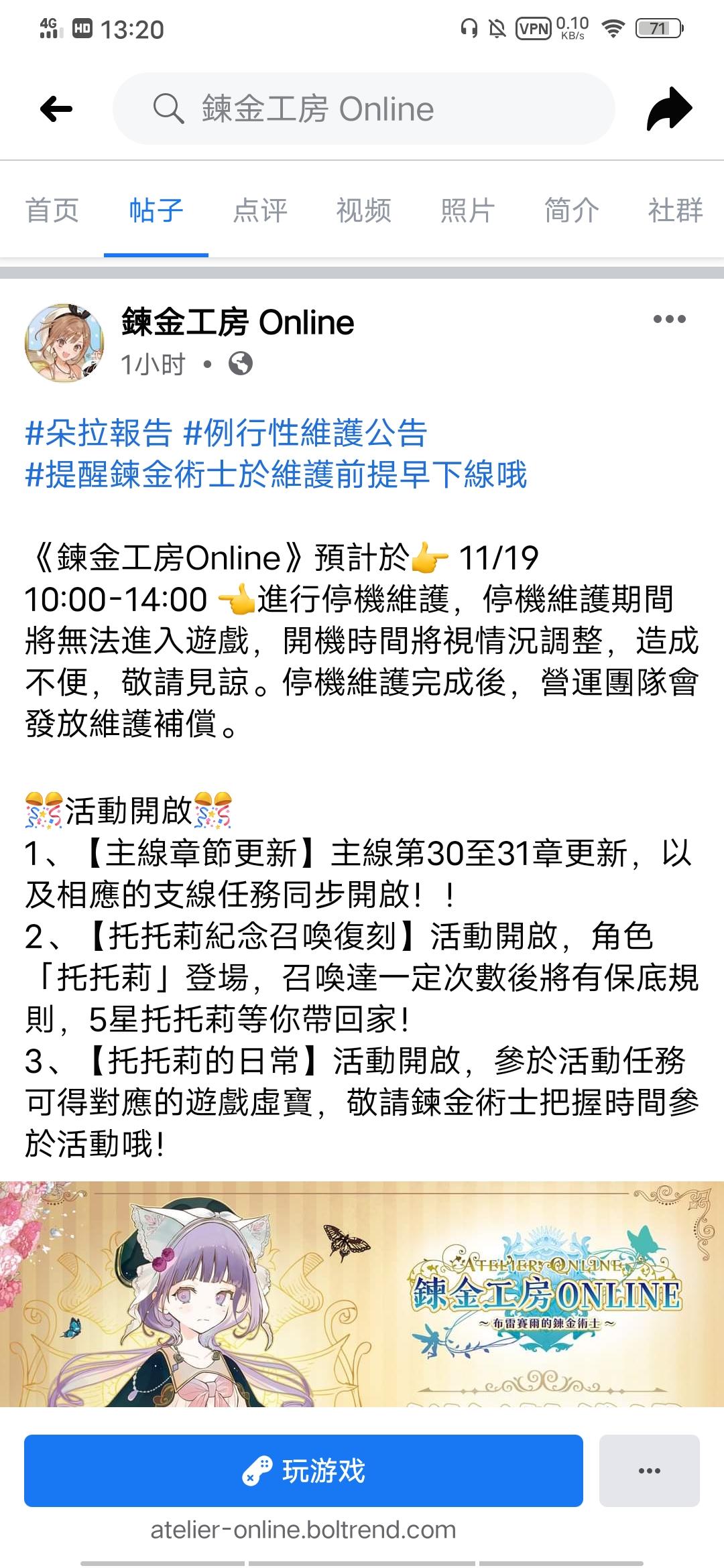 《鍊金工房Online》預計於👉 1/7 10:00-14:00 👈進行停機維護