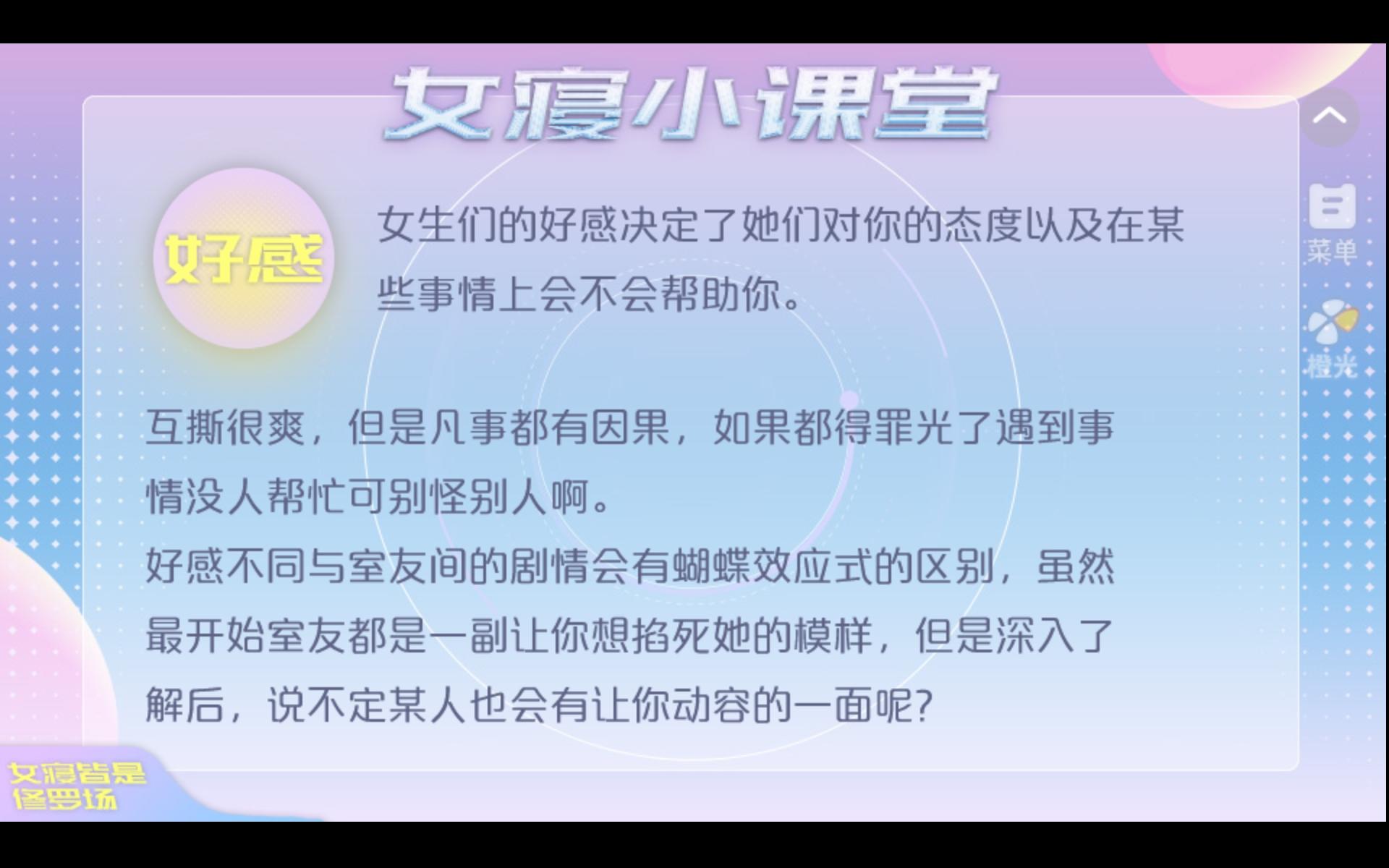 #橙光 #橙光游戏 #橙光游戏推荐 #女寝皆是修罗场 第一次玩排位排到第四 真的不是想象中的那么简单 排位是看各项素质能力的综合点数~下次一定要努力进前三✌🏻选项大多都会影响自己的性格以及室友的好感度 在后期十分重要 所以一定要谨慎选择做好存档! #发现好游戏 #橙光分享任务