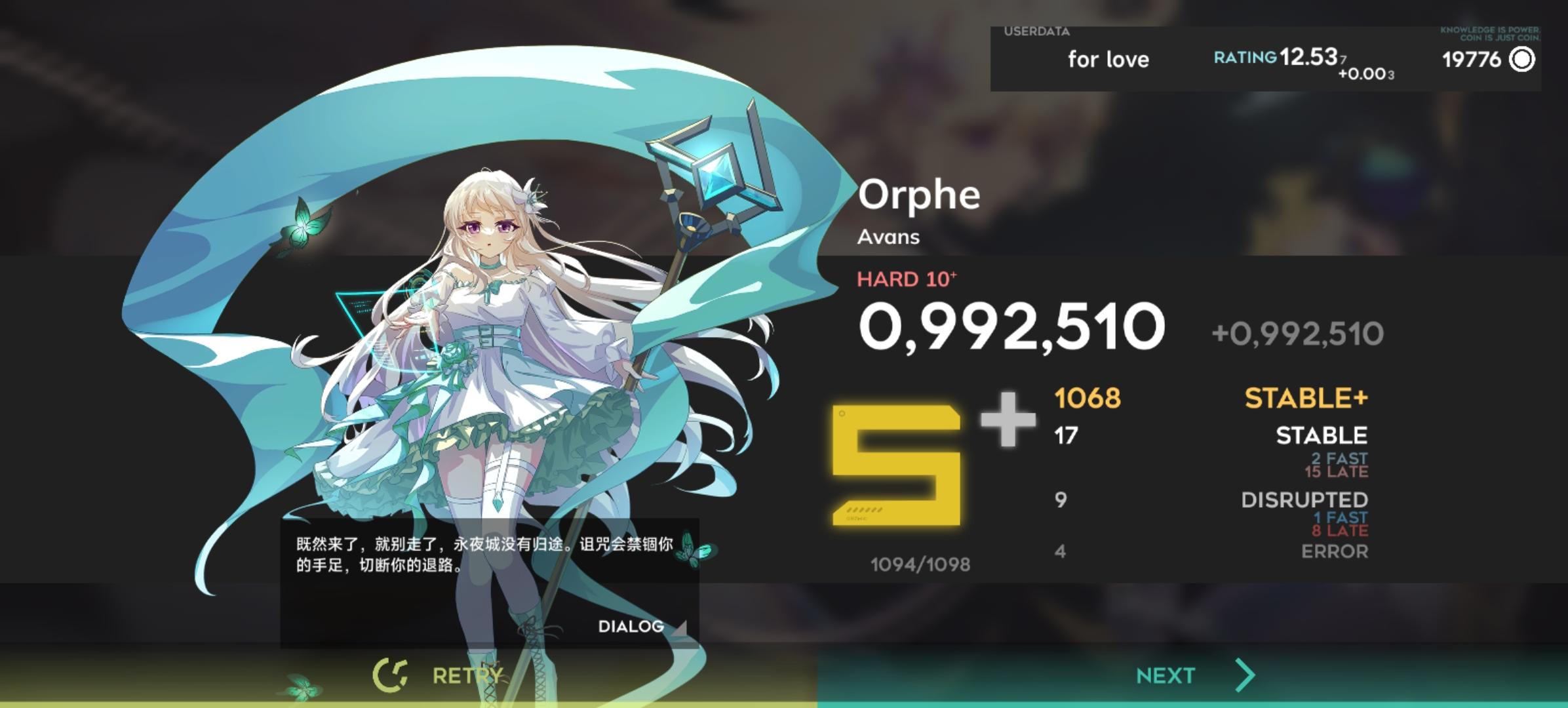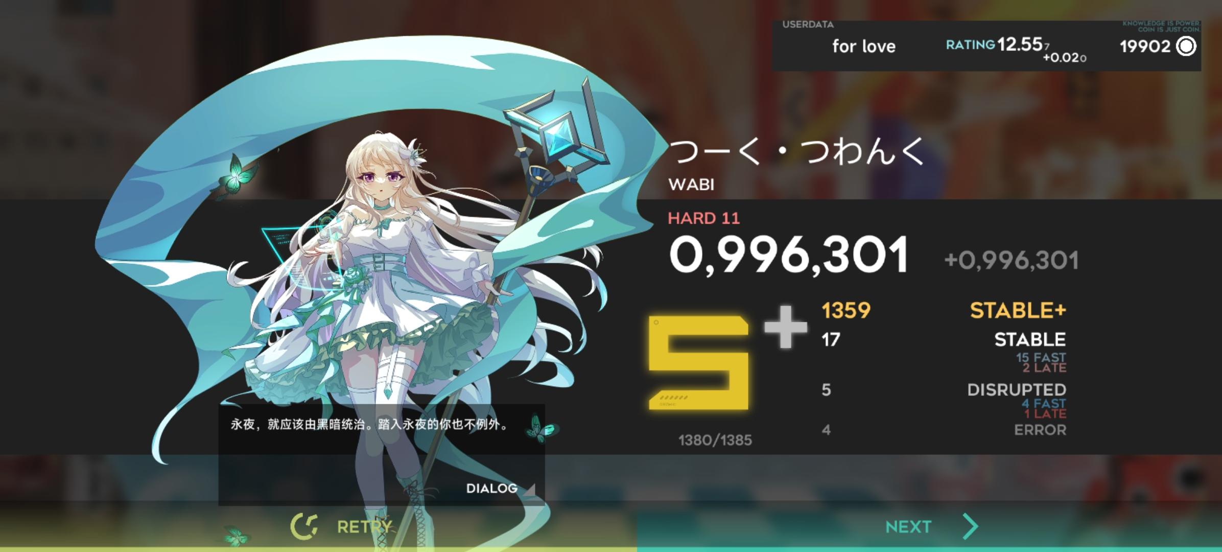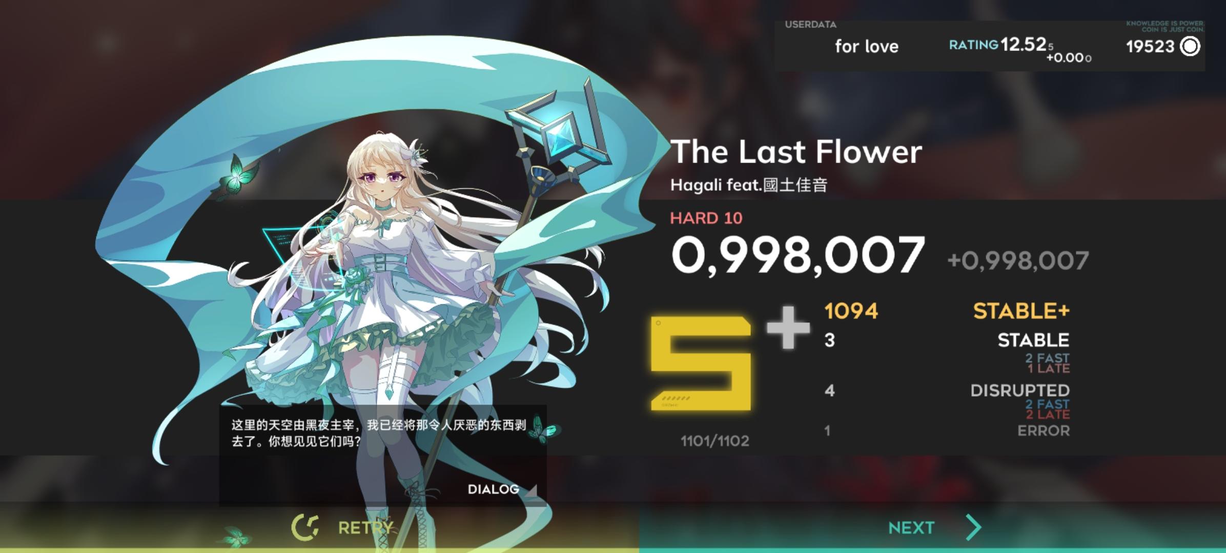打完Arc随手打了两把,竟然恢复了点手感,第三遍竟然性了😡😡😡然后恢复了一波,这时神秘人出现鼓励了我,于是我成功收掉11.9第二收!(这下收的歌不水了吧)猜猜这个神秘人是谁()