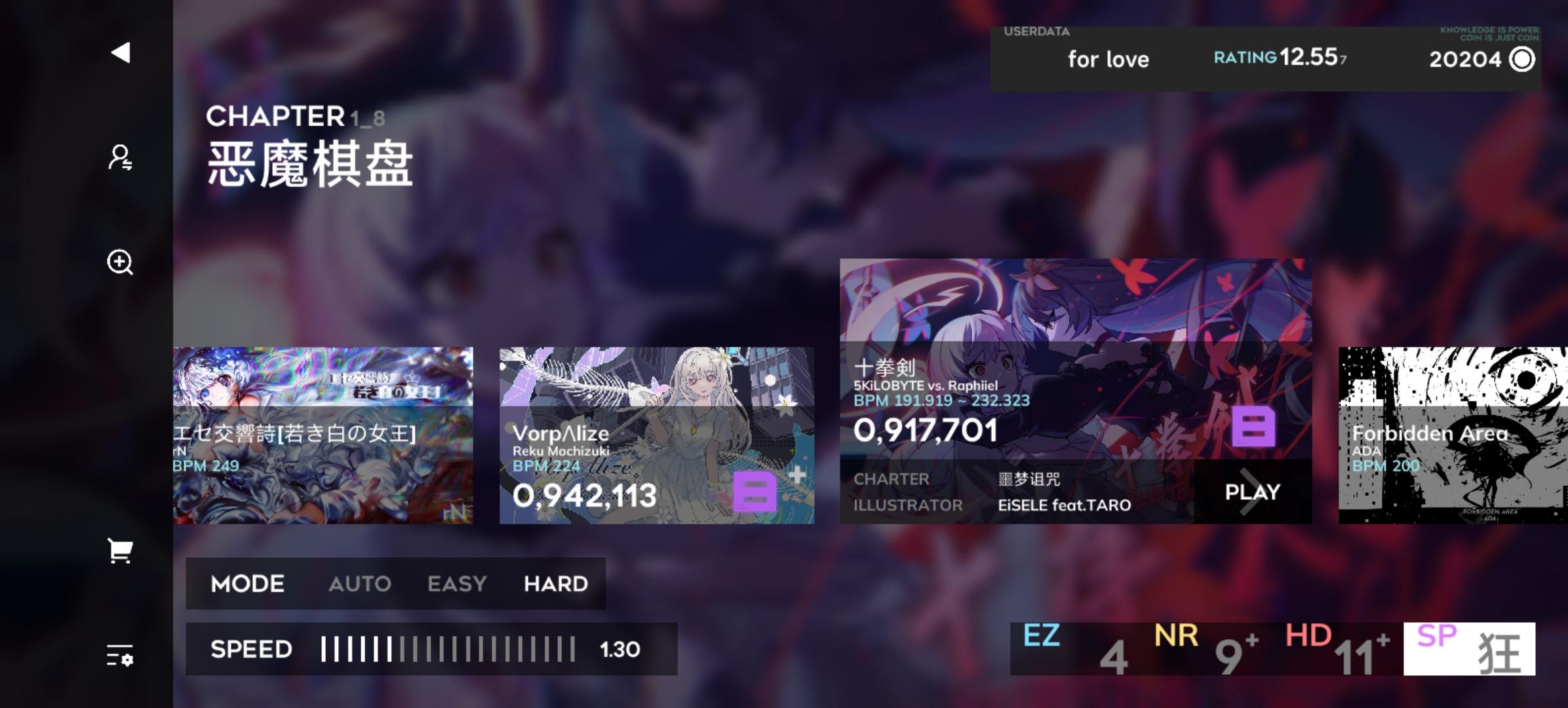 又进步了一点,反正不急,慢慢来rating仍旧远不够rks冲16第八章真的很好玩,点赞👍解锁第九章以后发现normal理论就一个能推的,这么一来这个游戏推理论差不多快可以告一段落了