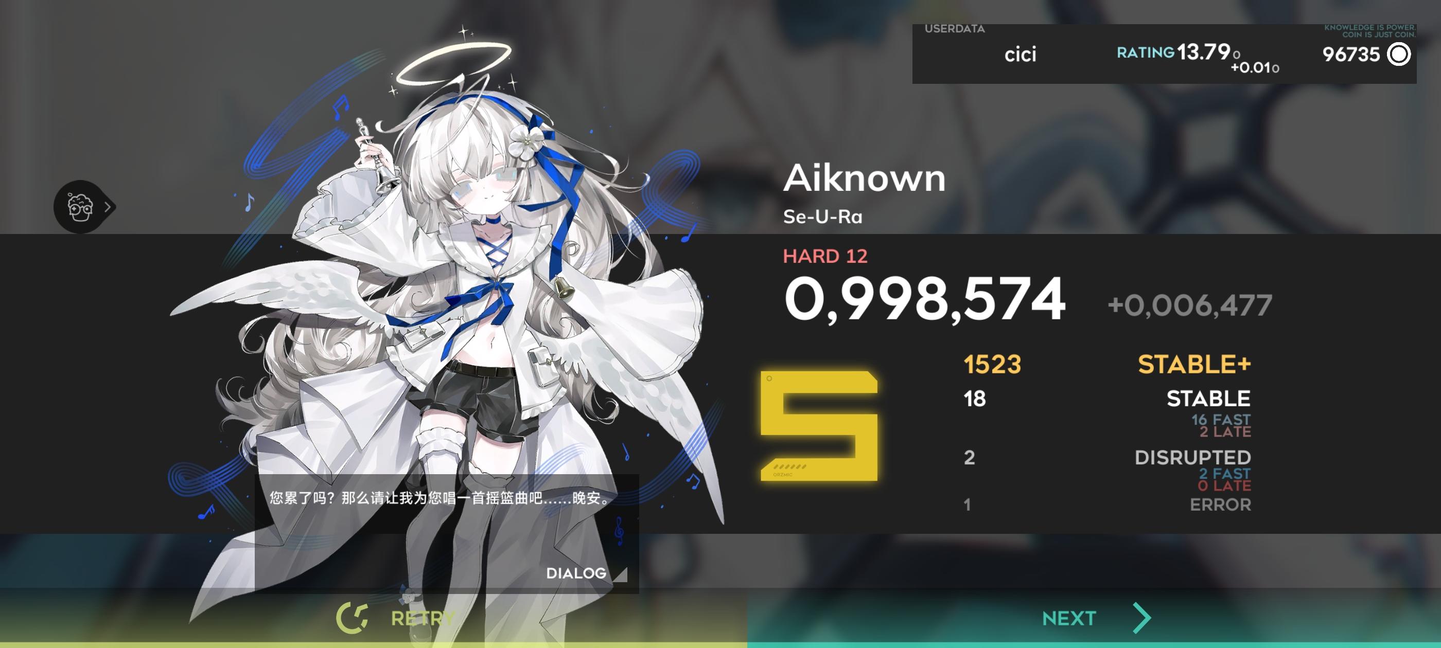 打完Arc随手打了两把,竟然恢复了点手感,第三遍竟然性了😡😡😡然后恢复了一波,这时神秘人出现鼓励了我,于是我成功收掉11.9第二收!(这下收的歌不水了吧)猜猜这个神秘人是谁()