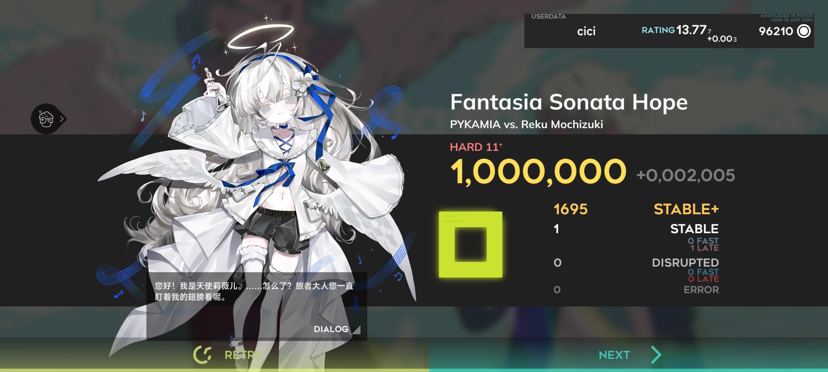 打完Arc随手打了两把,竟然恢复了点手感,第三遍竟然性了😡😡😡然后恢复了一波,这时神秘人出现鼓励了我,于是我成功收掉11.9第二收!(这下收的歌不水了吧)猜猜这个神秘人是谁()