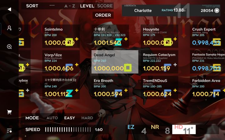 那就说一下最近的成绩吧rat13.988达成永夜城HD理论RC理论RIP理论Vorp SP宽判AP,严判超分FCSaventSP反正推了,比十拳剑高十拳剑SP 9963CaesuraSP 9961狂暴玩偶SP 9971矿SP 9973大FD SP宽判APGH 9994 1d病城SP宽判AP,严判超分以及一堆11+和12超分,数不过来,懒得提了。