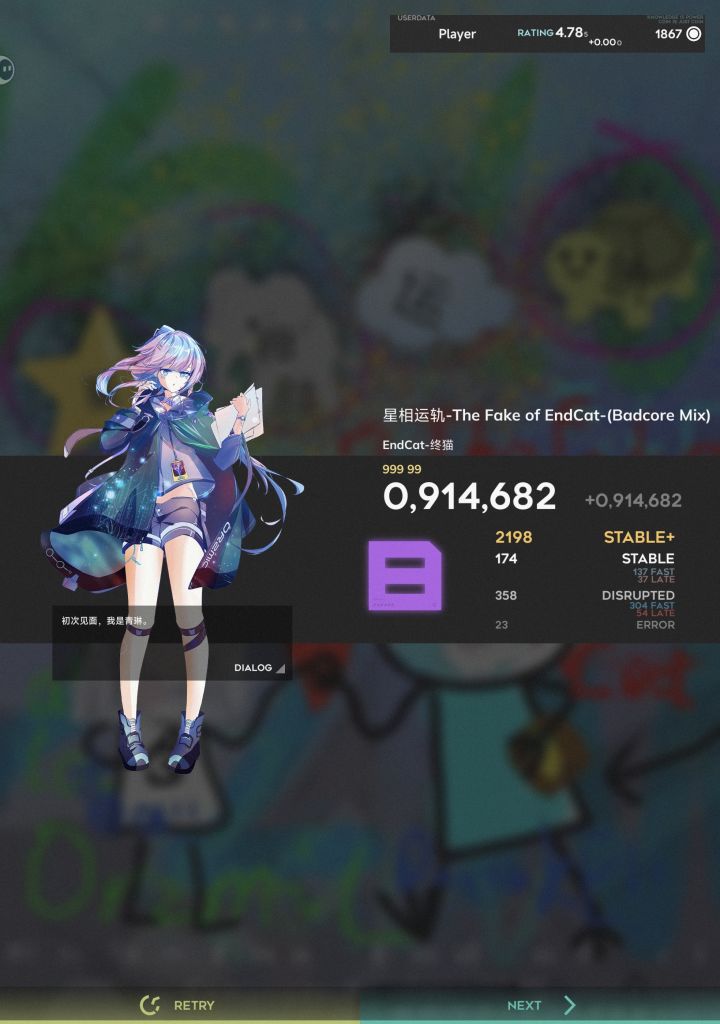 打完Arc随手打了两把,竟然恢复了点手感,第三遍竟然性了😡😡😡然后恢复了一波,这时神秘人出现鼓励了我,于是我成功收掉11.9第二收!(这下收的歌不水了吧)猜猜这个神秘人是谁()