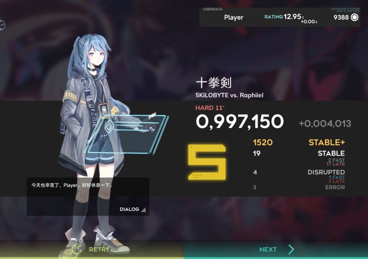 打完Arc随手打了两把,竟然恢复了点手感,第三遍竟然性了😡😡😡然后恢复了一波,这时神秘人出现鼓励了我,于是我成功收掉11.9第二收!(这下收的歌不水了吧)猜猜这个神秘人是谁()