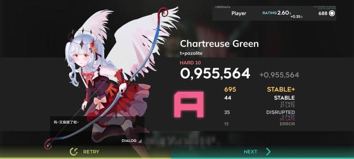 打完Arc随手打了两把,竟然恢复了点手感,第三遍竟然性了😡😡😡然后恢复了一波,这时神秘人出现鼓励了我,于是我成功收掉11.9第二收!(这下收的歌不水了吧)猜猜这个神秘人是谁()