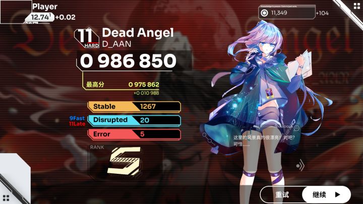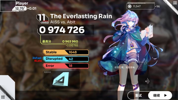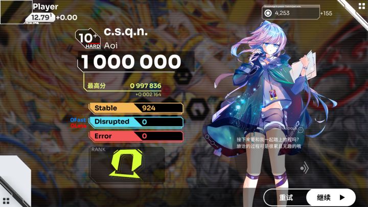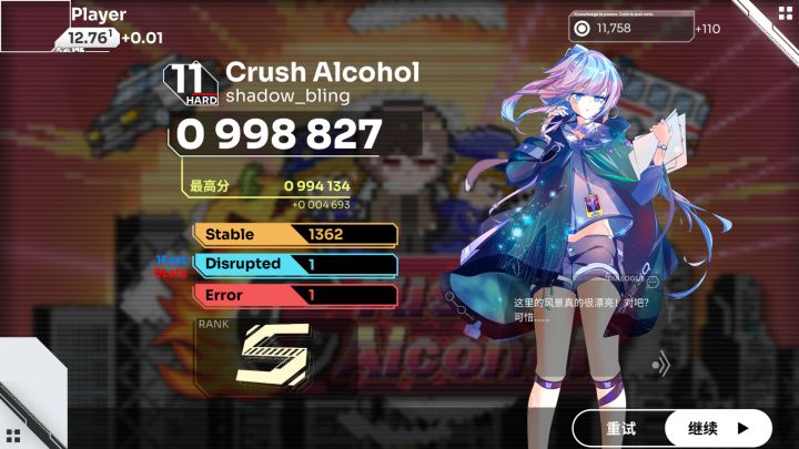 打完Arc随手打了两把,竟然恢复了点手感,第三遍竟然性了😡😡😡然后恢复了一波,这时神秘人出现鼓励了我,于是我成功收掉11.9第二收!(这下收的歌不水了吧)猜猜这个神秘人是谁()