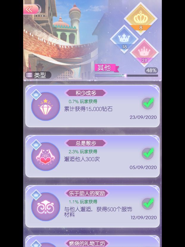 因为拿了一万五的钻石成就,最近又收获了好几千,钻石我目前不抽奖的话完全不缺,但金币真缺,做衣服和升级都得精打细算,没充值过