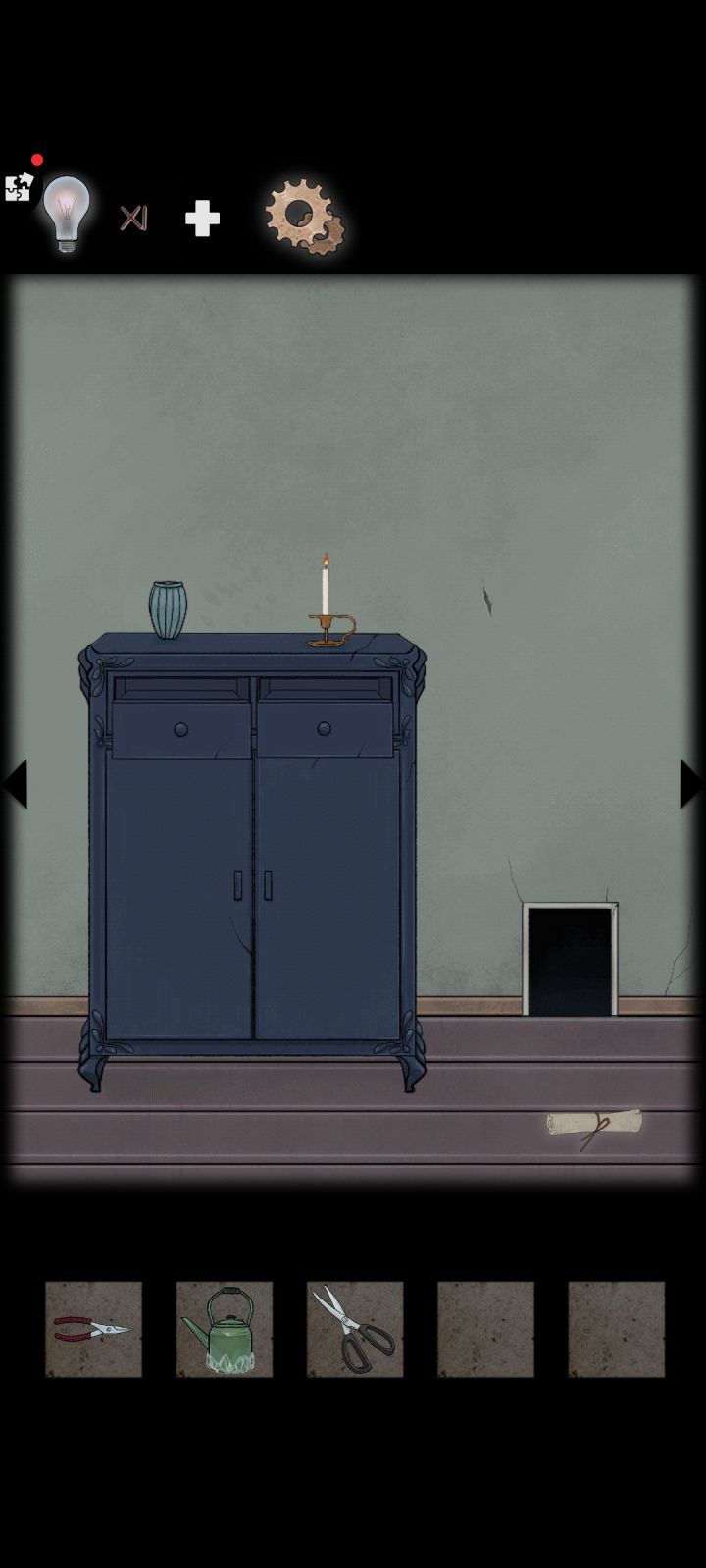 游戏开始1、在游戏开始我们在门口旁边的垃圾桶旁边,拿到钥匙,打开门12、我们进门之后点击抱枕拿到锥子,在旁边的位置我们可以得到蛋糕,我们可以拉开旁边的灯就可以得到一张碎片。23、之后我们向右走,看到地上有一个老鼠洞,我们将刚刚在桌上拿到的蛋糕给小老鼠得到一颗眼球。34、我们之后打开右手边上面的柜子最上层,得到碎片,使用我们刚刚在枕头那里得到的锥子撬开地上的翘起来的部分拿到另外一个眼球。4.