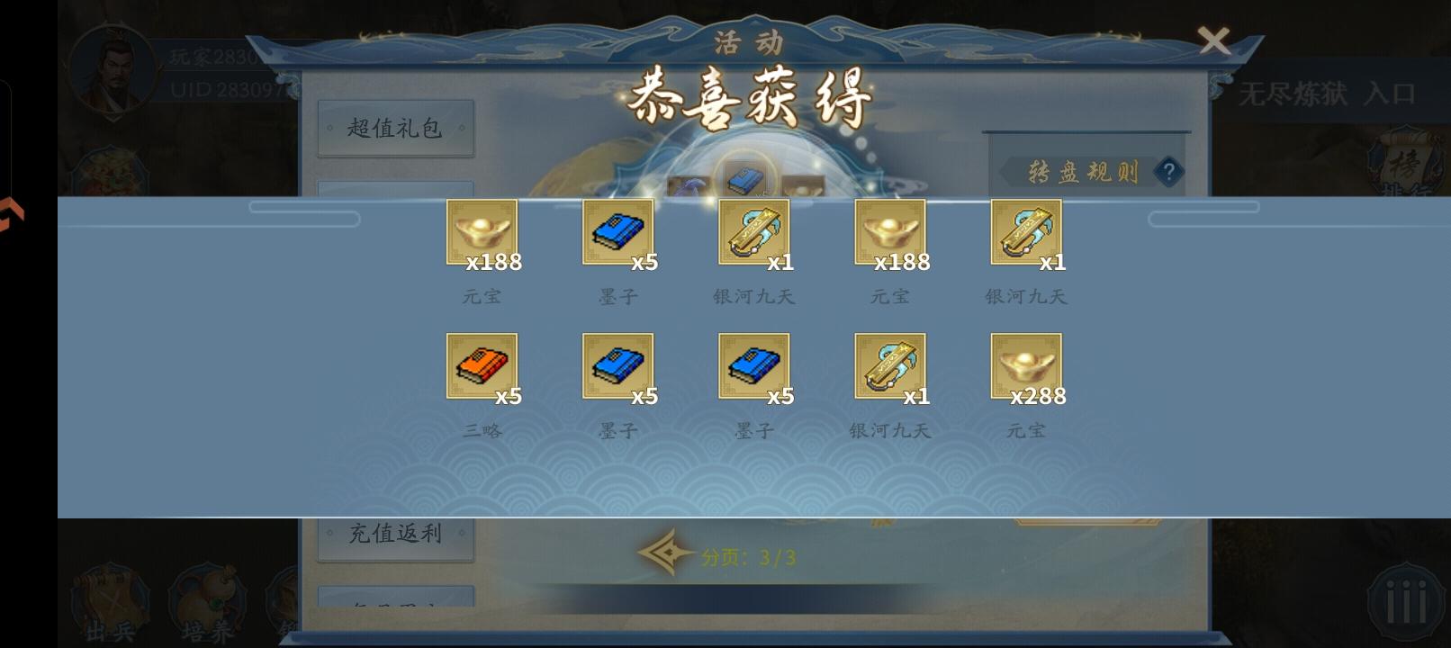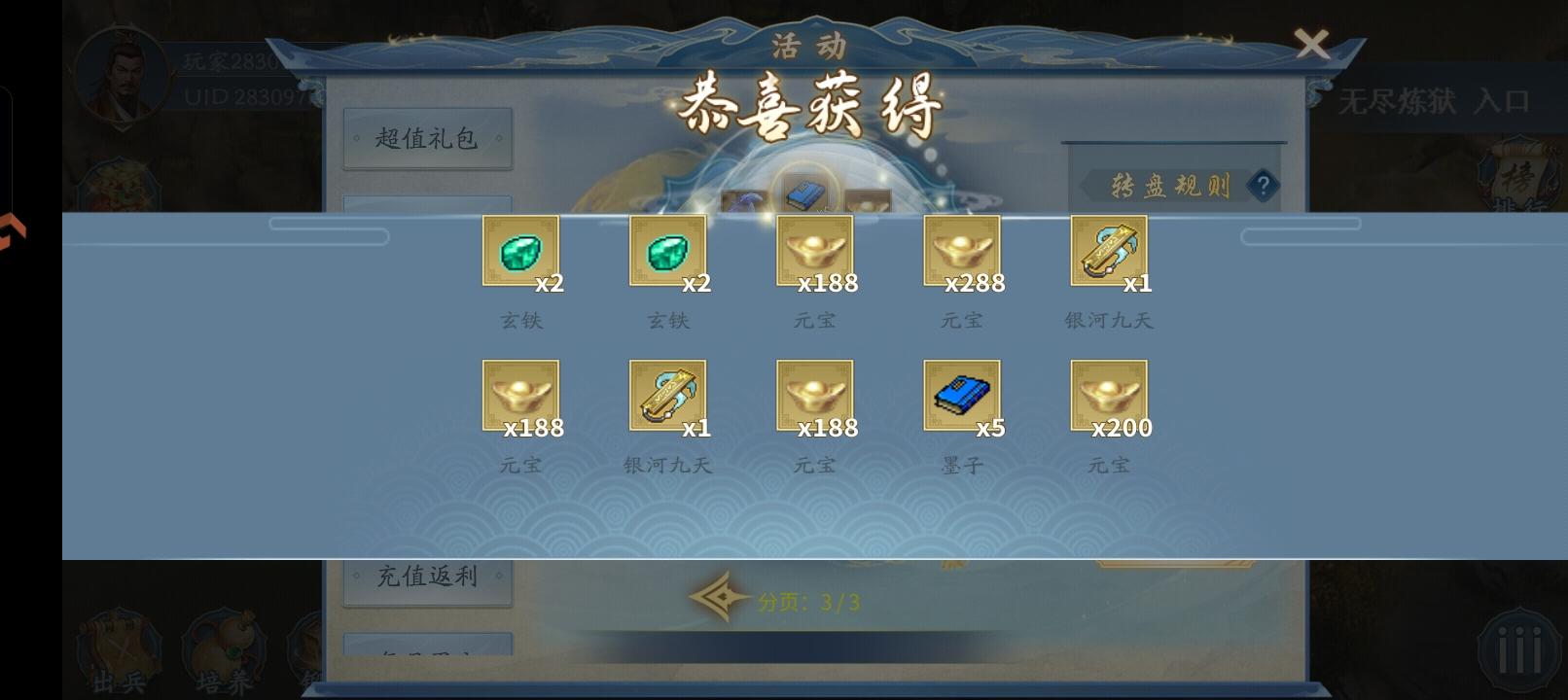 新手开局顺序:一、先七夕活动:梦幻—主城—节日—摘星大会。进去以后不杀怪,先把主角放在龙女旁边,做考验任务,任务先做4.和2,(答案军形篇、孤竹君)做完以后赵元奴和李师师变成友军,(这里的赵元奴和李师师是毕业版完全体,李师师有全屏无视特技,赵元奴有全屏毒,先使用李师师全屏无视特技,再使用赵元奴全屏毒可以秒杀敌军)利用这两个的全屏,做完1.3的考验,友军全部到齐。然后利用炮灰引两三波怪