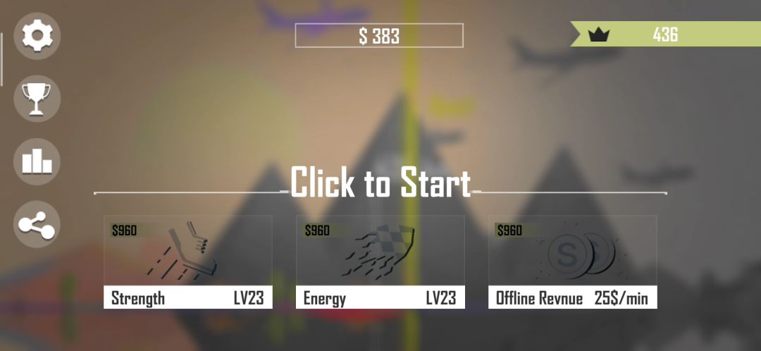 大致玩法好像就, 点一下,点一下,点一下, 开头的预先两下, 之后就疯狂点, 但又不能太快把上面进度条点完, 点完的话会飞不远 有点儿单调呀!