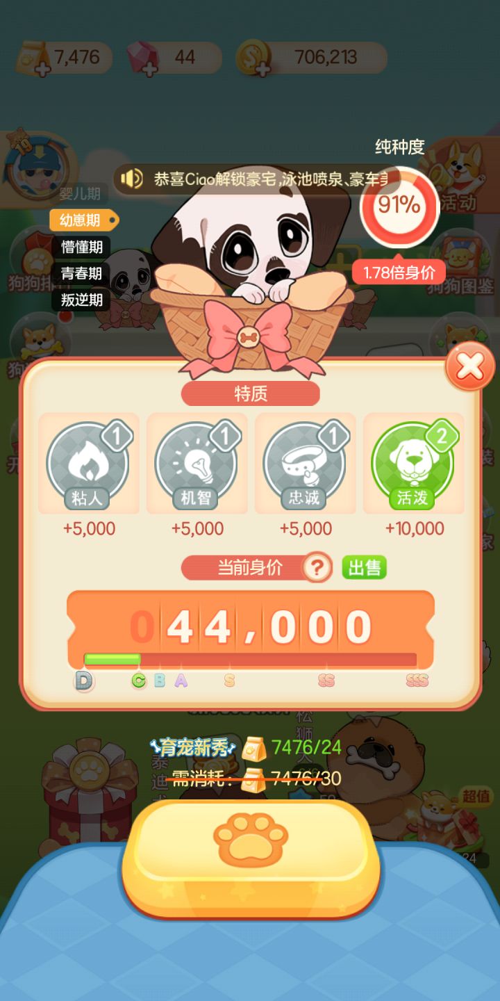 本来五年前在QQ小程序上就有玩到,当时是用体力射中间的狗,后面玩不了了,突然在tap看到网易的家具改造王,很欣喜,现在换成了合成,也很好玩,养狗一直是我的心头好。创了个小区,才刚没发展多久,又看到服务器关闭…那个号玩了两个多月吧,虽然是0氪,但是每次六点都习惯性上线做代言跟比拼,舍不得养的勾勾,有点惆怅_(:3 ⌒゙)_