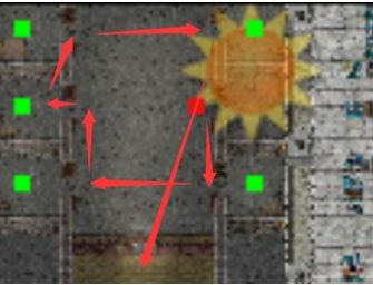 【9】程咬金逃狱 程咬金移动顺序: 右中(起点)—>右下—>左下—>左中—>进左中房间,等敌军落入陷阱—>左上—>右上—> 最后抵达地图最下方离开 百姓移动: 右下的百姓进右中房间 左下和左中的百姓进左中房间 第 5 回合,来护儿带 2 官差出现在地图下方,会随机去左下或者右下牢房并且中陷阱。 多周目注意来护儿(枪兵)的攻击范围,我军任意一人均不可在其攻击范围内 全部百姓逃脱,获得标枪。 Ps:一