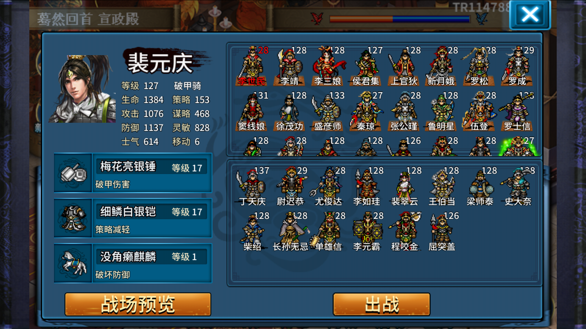 本关全员出战,内购武将为系统自带,需要配装。多存档