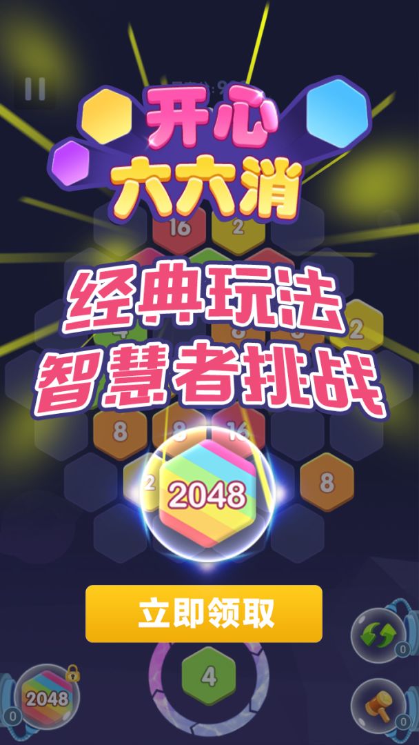 开心六六消是一款轻松休闲游戏, 以2048为基础, 改为六边形三个及以上相同颜的数字就能合并的玩法. 简单易上手, 增加了多个游戏道具, 也增加思考乐趣.