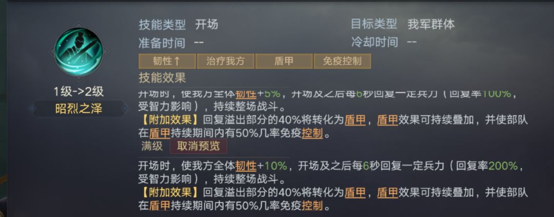 武力成长属性 2.51,智力属性1.05,统率属性 2.10,攻城厲性1.58,定位攻守,作为历史上一名悍将董卓的武力毋庸置疑加成很高,因此董卓是汉董队里面的核心,在汉董队中董卓打出的伤害是取胜的关键。技能效果:战斗中,第7.5s开始,自身进入【饕餮】状态,持续至战斗结束。饕餮:每次发动普攻有 15%几率发动连击,武力伤害减免 +10%,普攻命中额外造成目标 3%当前兵力的兵力伤害,并使自身回复5