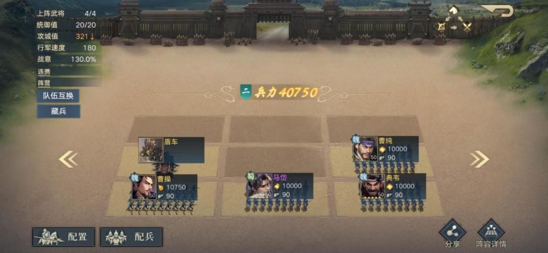 大家好我是24区的吾剑未尝不利 话不多说 我这里讲的主要是20御的成型队伍,大家可以根据自身情况做调整。 四骑:核心曹丕,高伤害加成前期暴力输出。|字阵型。延伸闪避骑暴击骑。 思路:全员输出集火,秒掉大量兵力保证自身存活。 单核/双核:以周瑜弓吕等等输出天花板武将为核心,坦减伤(闪避)治疗,辅助增益减益。 思路:保证核心武将状态打出爆发伤害。 羁绊:以武将羁绊加成为点,通过宝物配合。 状态 :其实