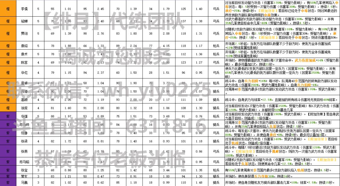 【绯月】团队《荣耀新三国》群雄将领数据一览