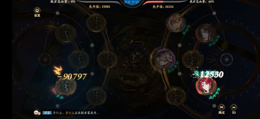 拿小号尝试了一下这个阵容进攻,如果介意会武用青隐的就别看了,不过这个队伍确实是成本比较低,进攻可用,对面没有隐藏弋兰天,但是隐藏了带仙鹤套的名士,但是他没有将弋兰天放在一号位,所以我将伽华放在一号位先带走弋兰天,后面就一帆风顺了,在这一局中星河的猴套和青隐因为仙鹤的存在基本没什么用,如果对方没带仙鹤,那会更快结束战局,当然啦,这里还有一部分原因是对面练度不够,所以防守不用这套