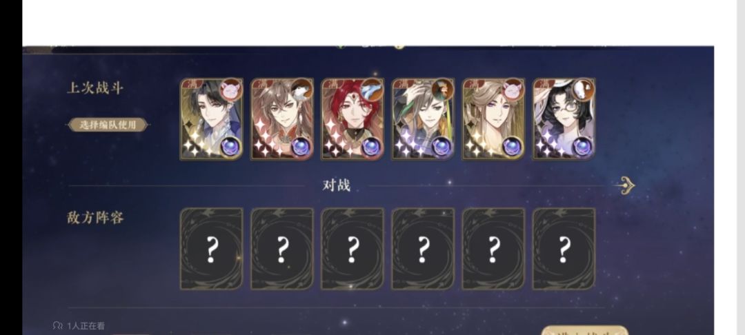 此队伍集控场,解场,坦度,后排极高容错率,高爆发为一体,而且平民向,只有两个ur,爬塔二队必备,极强推图能力,强pvp能力,只有混公会本算输出的时候有点吃亏,不过你还有一队不是? 先上结论,六号位应该上月灵,可惜本人实在没抽到 一号位唐堂 R卡战神,强控场,晕四个不是开玩笑的。r卡高突后高概率受普攻眩晕 四艺推荐: 金鲫/玉牛,副词条找生命防御先手 二号位文先生 主要目的是置换副本中精英怪给惊墨提