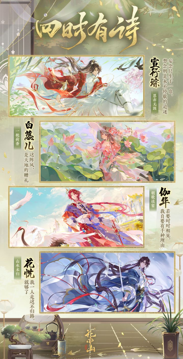 收到邀请函的诸位名士们,大多已经踏上启程大景北地的路途了。从南塘、宣京、越阳、边疆等各地奔赴而来的名士们,对这次的“花花乐游苑”,又有着怎样的期待呢?>>>2025年11月1日,“花花乐游苑”冰雪盛会活动玩法正式开启,四载偕行,共此冬月。2025年11月8日晚19:00,《花亦山心之月》四周年版本直播即将开启。