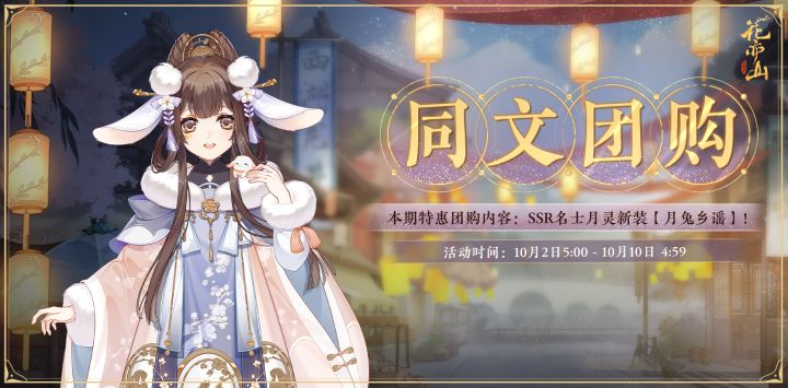 🍁中秋同文团购活动即将开启,快来看看有没有喜欢的礼包吧~活动时间:2025年10月2日5:00 至 2025年10月10日4:59活动说明:活动期间每两日开启一场团购,每场售卖的礼包有所不同。包括SSR名士月灵新装【月兔乡谣】、花诏令、金叶子、自选SR等超值礼包。学子可在团购时间内参与团购,每场团购的时间有限,请留意参团时间。❀团购刷新时间:每两日5:00刷新❀折扣档位:分四个档位,当场团