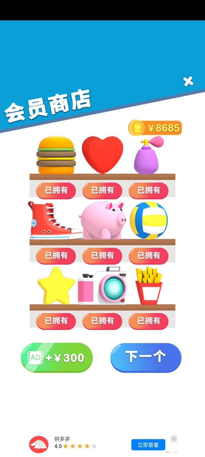 广告是看不了,不过这个影响对我来说不是很大。每次都要四个筐都装满才能换这一点不是很喜欢