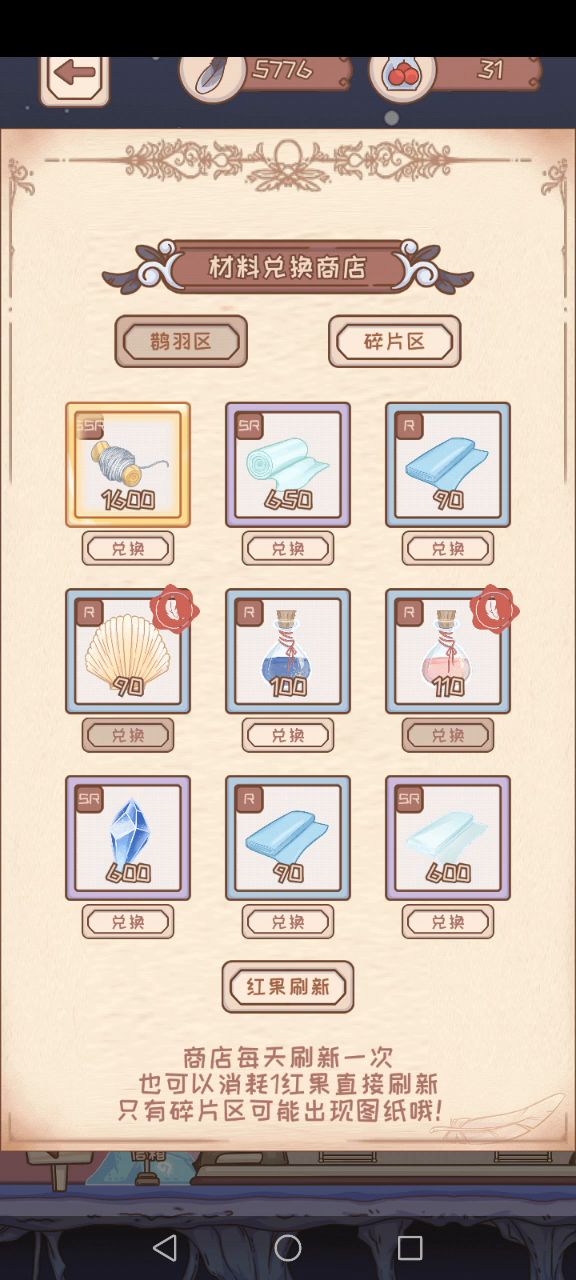 兑换材料点一个它的对角线的材料也显示我换了,愣住,兑完鹊羽的材料切换到碎片显示的是我都兑换过了,红果刷新了就显示全都换不了,重进之后也还是这样。 你们真的不是来更新bug的吗。