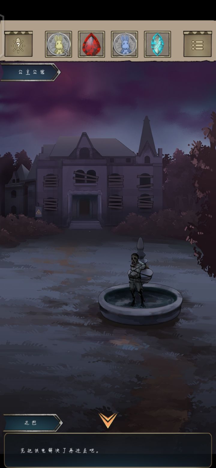 进入公主公馆的冒险。攻略(上)链接:https://www.taptap.com/topic/20239986————————————————————————一进公馆,两个双胞胎小姑娘站在楼梯前不动弹,要是换件衣服我该想到闪灵了。两个小姑娘告诉我“姐姐在等哥哥。”是若叶在等我吗?突然间眼前景象瞬间变幻,诡异!不行得快点找到若叶叶到底在哪里呢!现在只能在公馆里找找线索。1。捡起地上小姑娘