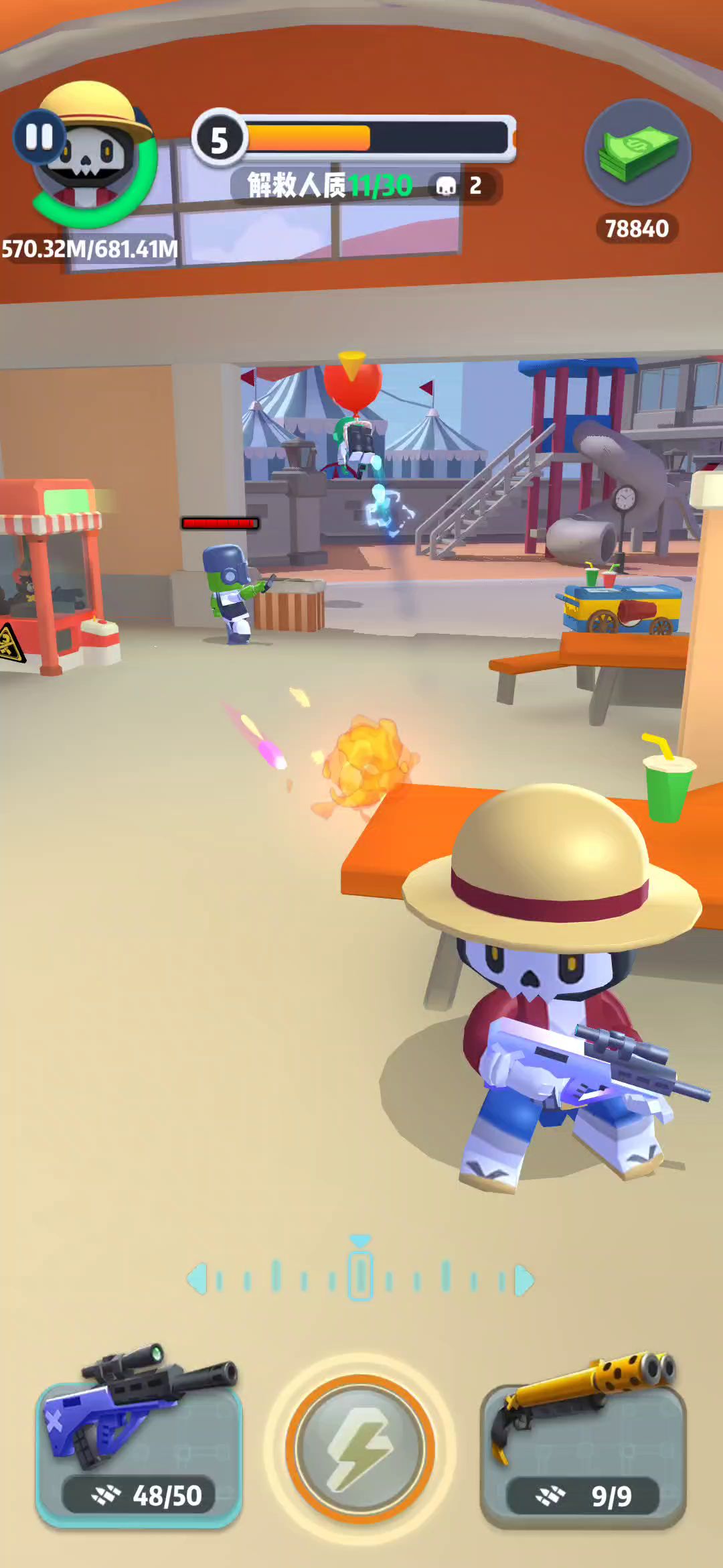 滚轮用的时候全场减速 这期间不松手 也就一直减速 然后就有很多的时间反应 甚至刻意的贴近再躲来回血 但是说实话很浪费时间 所以我们可以优先边上的“脏丝”然后滚轮划一下就松手 如果有子弹的话就划然后不松了 躲子弹 最好选出步枪手感好嘿嘿