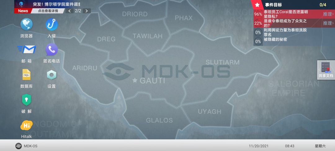 全收集其实也不是那么难,时间长主要还是因为把文字全都看完了,也花时间动脑子了,唯一卡住的地方就是入侵手机的九宫格解锁密码