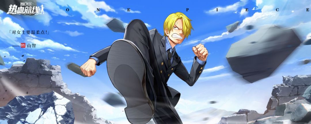 人物日志 山智,日本漫画《海贼王》及其衍生作品中的男性角色。草帽一伙厨师,金发,有着卷曲眉毛,永远遮住半边脸的家伙,香烟不离口,最爱女人,很花心但很有风度,海贼中的绅士。小时候在红脚哲普那儿学习厨艺。踢技以快准狠被海军称之为“黑足”,但从不愿意伤害任何女性,哪怕是敌人。在经过司法岛一战后也成了悬赏对象,首次悬赏就有7700万贝里(但通缉令是画上去的)。梦想是找到传说之海All Blue而跟随路飞一