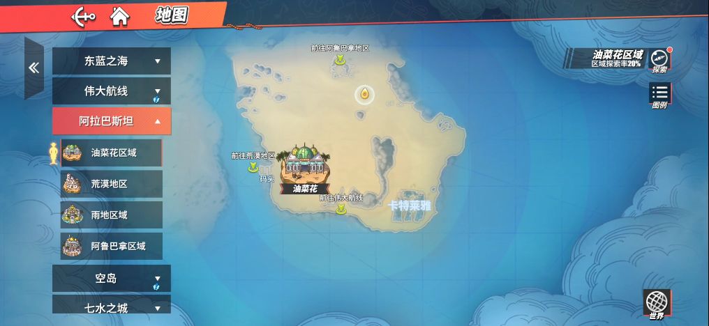 《航海王热血航线》油菜花区域探索攻略:隐藏彩蛋收集,宝箱福利位置大揭秘!油菜花区域是阿拉巴斯坦中一处极为宽阔的区域,在这里四周都是沙漠,而且由于经受战乱,导致这里破烂不堪。油菜花分生活区和商店街,因为它被沙漠包围,所以玩家需要通过交互码头来进出城镇。油菜花作为伟大航线和阿拉巴斯坦的交接区域,这里隐藏着许多特殊的奖励和彩蛋,该篇将帮助玩家探秘油菜花区域,找寻那些超隐秘的宝箱奖励。 油菜花区域——NP